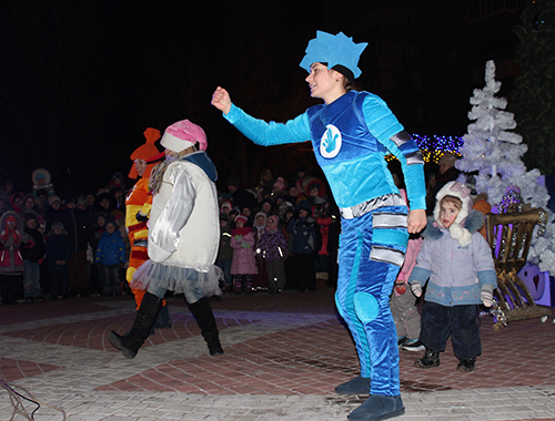 Благодаря маленьким, верящим в чудеса мелитопольцам, забавным сказочным и мультяшным героям и доброму святому Николаю в центре города на площади Победы теперь каждый вечер до 19 января будет зажигать огни главная елка Мелитополя.