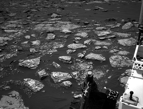 Около года назад «Кьюриосити» столкнулся с другой проблемой: моторчик, открывающий камеру для собранных образцов, вышел из строя. Фотография, сделанная с помощью навигационной камеры «Кьюриосити» 2 декабря, через день, когда бур отказался работать «Проблема действительно была, однако недавно была решена», — сказал один из участников программы «Кьюриосити» Ашвин Васадава на конференции Американского геофизического союза, встреча которого проходила на прошлой неделе.