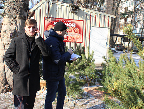 Далее комиссия переместилась в район торгового центра «Алекс» на пр. 50-летия Победы. У торгующих там все документы оказались в порядке. На некоторых елях даже были чипы. Как оказалось, есть они ко всем деревьям, просто не на все их повесили.