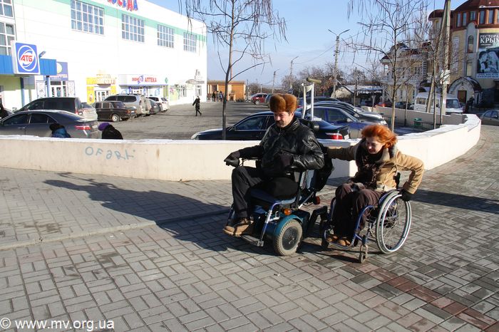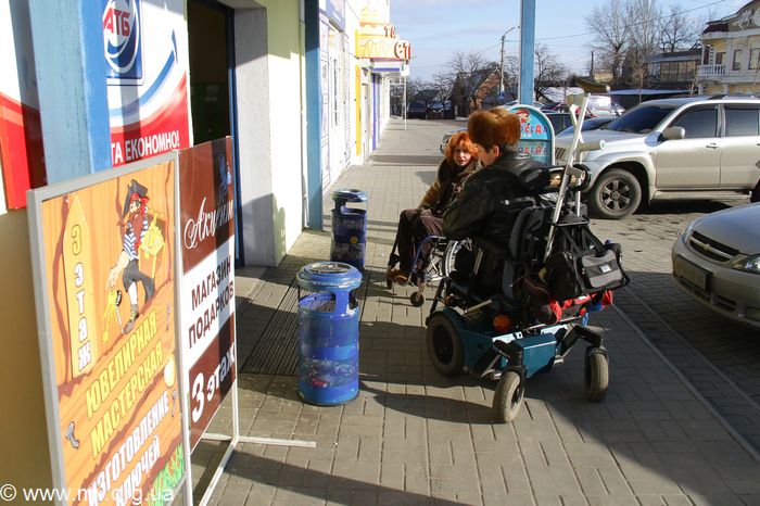 Мы решили протестировать самый центр Мелитополя на доступность, и пригласили для этого настоящих экспертов - членов городского общества инвалидов Инну и Николая. Инна передвигается на обыкновенной инвалидной коляске, Николай – на электроскутере. Проехав по четной стороне от городского общества инвалидов на пр. Б. Хмельницкого, 64 мимо парка до перекрестка с ул. Героев Украины (Кирова), они отметили, что передвигались вполне нормально. А вот проехать в инвалидной коляске по нечетной стороне проблематично: владельцы магазинов на первых этажах, вымостив плиткой у входа в свои заведения, либо вообще не предусмотрели съездов, либо отделались такими крутыми, что без посторонней помощи колясочнику по ним не проехать.