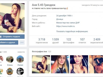 Имя подсудимой Анна Гриндюк, возраст 29 лет. Если верить ее страничке в соцсетях, она работает в «Министерстве связи» так называемой «ДНР». Перед тем как занять «должность» в Донецке, проживала в Запорожье.
