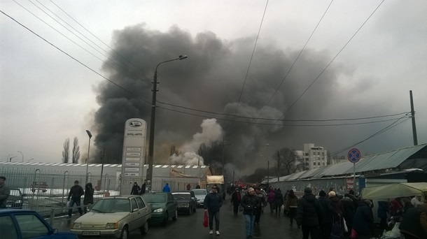 В Киеве возле метро Лесная в воскресенье, 25 декабря, горят склады с сэконд-хэндом. Об этом сообщила руководитель сектора связей со СМИ Госслужбы по чрезвычайным ситуациям Киева Светлана Водолага.