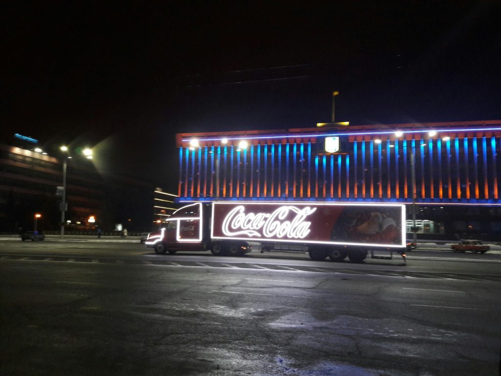 В Запорожье приехал знаменитый красный грузовик из рекламы популярного напитка. Рекламный ролик, в котором появляется празднично украшенная фура, традиционно показывают перед новогодними праздниками уже несколько лет подряд.