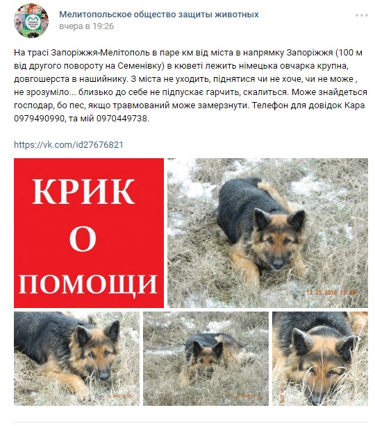 Помогите! Под Мелитополем в кювете лежит овчарка