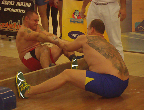 Вот спортсмены берутся двумя руками за толстую крепкую палку длиной около полуметра, рефери при этом внимательно следит за каждым их движением. Поединок начинается по сигналу рефери, но спортсмены начинают тянуть палку еще за 2-3 секунды до начала. А по сигналу и вовсе рвут палку на себя и затем либо вырывают ее из рук соперника, либо перетягивают его на свою сторону.