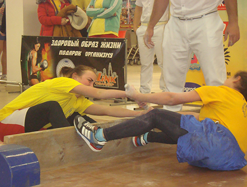 Мужчины и женщины по-разному проявляют себя не только в жизни, но и в спорте. Вот, например, легендарный борец, мелитополец Сергей Соколовский (вес 170 кг) выходит на поединок с крепким соперником из днепропетровской команды (его вес 130 кг). Два здоровенных мужчины с горой мышц и мощным спортивным настроем, который просто-таки написан на их лицах, занимают места на помосте. Но после сигнала рефери Сергей Соколовский буквально за несколько секунд вырывает палку из рук соперника. Через пару минут второй поединок – и снова мелитополец вырывает у противника победу из рук вместе с палкой.
