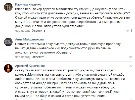 "Как сообщают нам компетентные источники, сегодня ночью с центральной елки в Акимовке было украдено 2 гирлянды и сорвано 3.