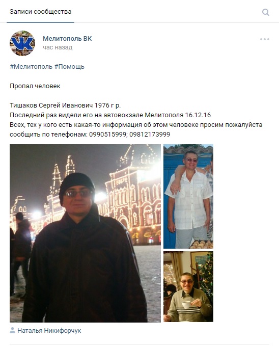Последний раз видели его на автовокзале Мелитополя 16.12.16