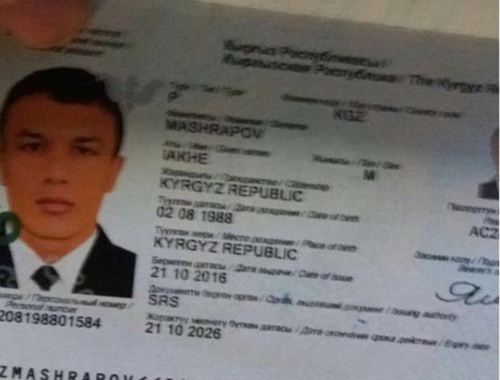Согласно данным СМИ, террориста зовут Яхья Машрапов. В социальной сети Twitter появилось фото его паспорта, где указаны его фотография, год рождения и другие данные.