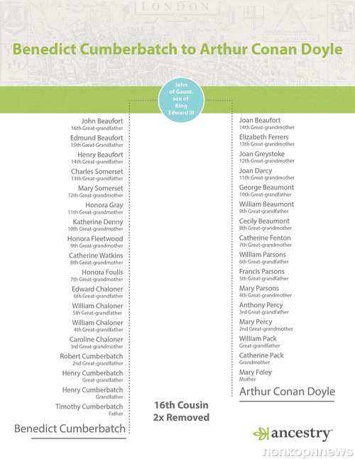В результате исследований историки сайта Ancestry.com обнаружили у Камбербэтча и Дойла общего родственника – Джона Гонтского, четвертого сына короля Эдварда III, родившегося в середине XIV века.