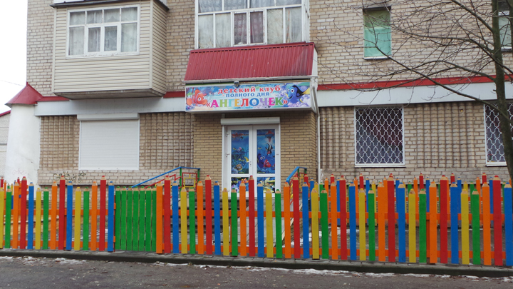 Полноценным детским садом, правда, это учреждение назвать сложно. Это скорее группа из полутора десятка деток в возрасте от 2 до 4 лет. Группа открыта в отремонтированной квартире, имеющей отдельный выход. Если судить по визуальным впечатлениям, то садик совсем не плохой, хотя стандартным требованиям, которые предъявляются государством к подобного рода учреждениям, он не соответствует. Например, большое внимание при проверках детских садов, комиссия городского управления образования обычно обращает на детские площадки и игровой материал на них. В группе "Ангелочек" и площадки как таковой на улице нет. Перед входом имеется небольшая территория, огороженная ярким заборчиком, где одиноко стоит песочница.