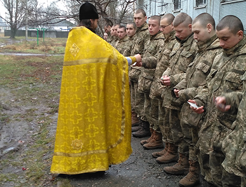 После литургии настоятель храма иерей Алексей Зубко обратился к военнослужащим и пожелал им здоровья, долголетия и, самое главное, крепости духа, так необходимого каждому воину в несении воинской службы и выполнении своего долга защитника Отечества. Отец Алексей окропил солдат святой водой и подарил каждому из них иконку.