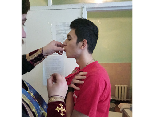 Накануне великого праздника Рождества Христова пожилые люди и больные дети получили причастие.