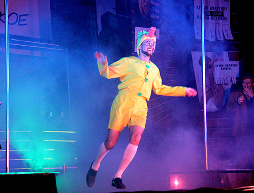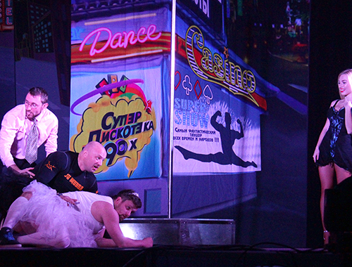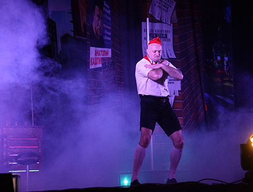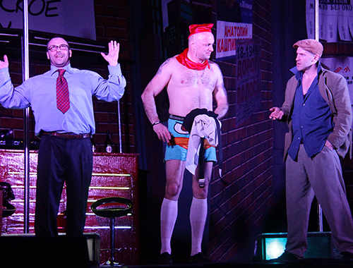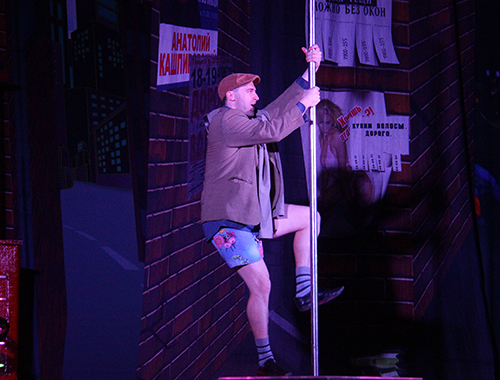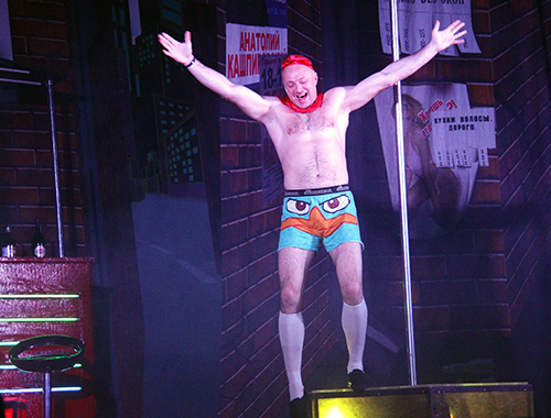 Оправдывая слово «стриптиз» в названии спектакля, актеры регулярно демонстрировали разнообразные трусы; на фото – самые скромные из показанных