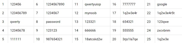 Эти распространенные комбинации чаще всего используют для защиты аккаунтов.