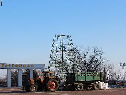 Как и обещал начальник управления ЖКХ Алексей Тегимбаев, сегодня коммунальщики приступили к демонтажу главной новогодней елки на центральной площади города.