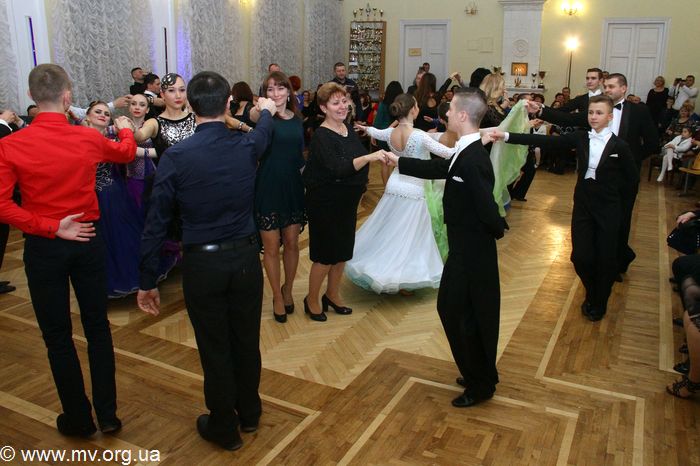 Настроился оркестр, зазвучали фанфары и начался зимний бал, на который пришли нынешние воспитанники ансамбля "Грация", выпускники разных лет, родители и друзья этого коллектива. Ребята средней и старшей групп исполнили вальсы, полонез, танго, в танцах разыграли сценки и рассказали хореографические истории о любви, соперничестве, красоте и дружбе. Их выступления были оценены громом аплодисментов и криками "Браво!". Родители восхищенно смотрели на своих прекрасных и грациозных чад через экраны всевозможных гаджетов, фиксируя каждое движение парящих по паркету пар. Ведущие мероприятия - культорганизатор Дворца Андрей Могила и одна из руководителей ансамбля "Грация" Елена Киреева перенесли собравшихся в волшебный мир танца, объявляя номера, общаясь со зрителями, устраивая для них игровые минутки. Танцы сменялись музыкальными страничками от учащегося Мелитопольского училища культуры саксофониста Максима Притуленко.