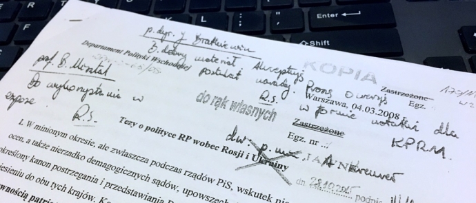 Об этом сообщает ONLINE.UA со ссылкой на РАР. В документе от 4 марта 2008-го года под названием "Тезисы о политике Польши в отношении России и Украины" стоят подписи директора Восточного Департамента МИД Польши Ярослава Браткевича, тогдашнего министра иностранных дел Радослава Сикорского и еще трех человек. Ограничения по секретности документа были сняты в октябре 2015 года.