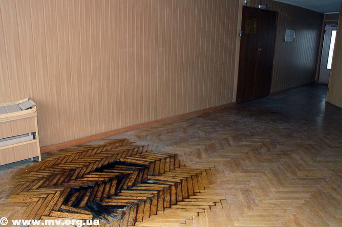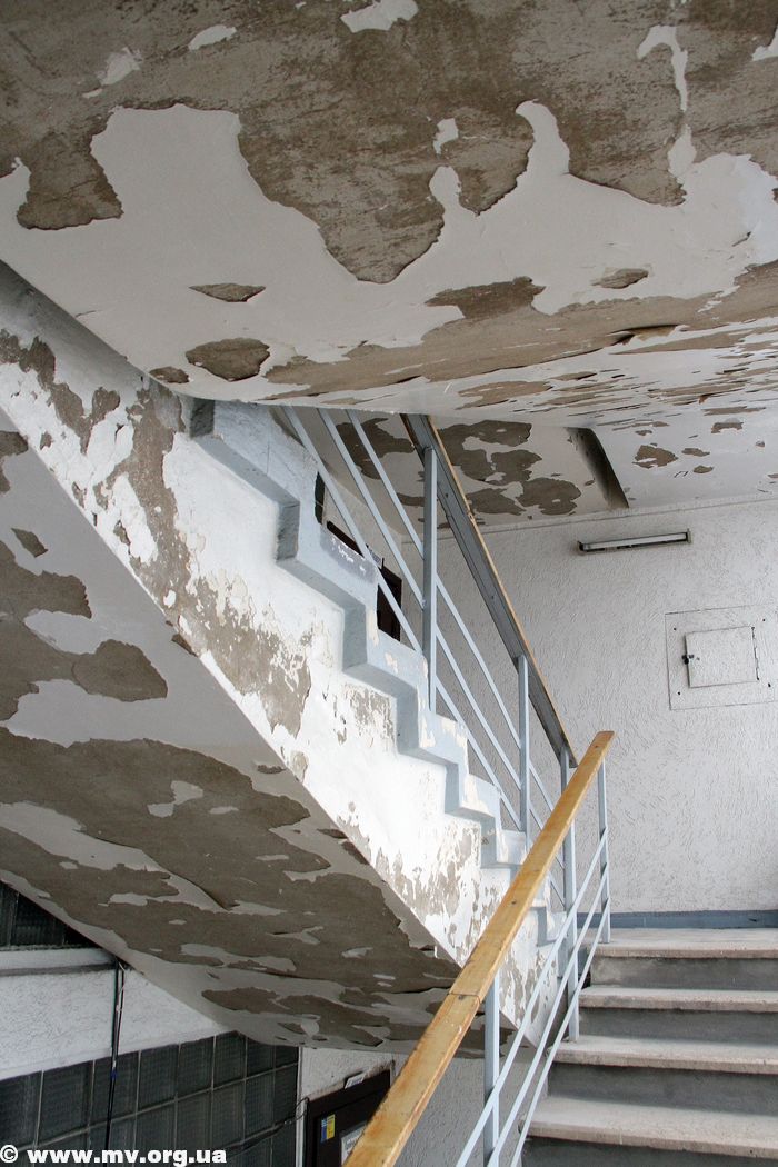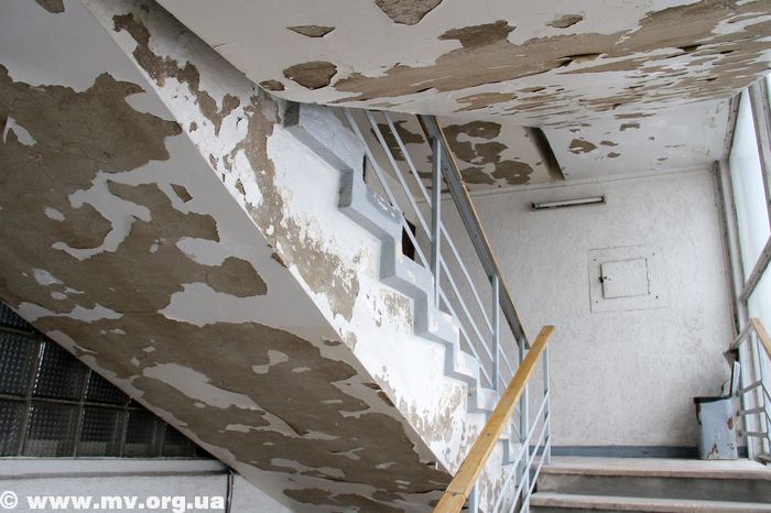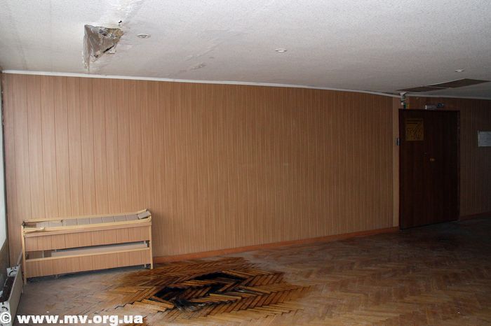 Самый крупный объект комсобственности находится в плачевном состоянии. Здание не отапливается, крыша течет, на лестницах обваливается штукатурка, а с фасада - плитка.