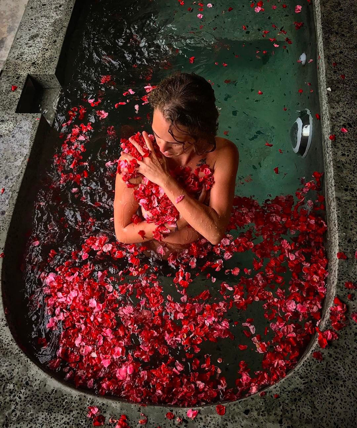 Экзотическое путешествие вдохновило 22-летнюю Тарасову на съемку в обнаженном виде. Девушка позировала в ванной, расположенной около бунгало.