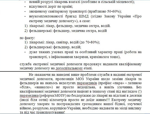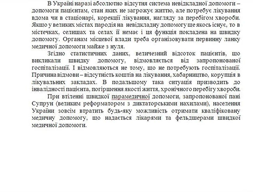 В связи с этим Независимый первичный союз работников скорой медицицнской помощи города Запорожья написали обращение к гражданам города, в котором указали причины, почему данная система не подходит для Украины и чем реорганизация может закончится для пациентов и медицинских работников.