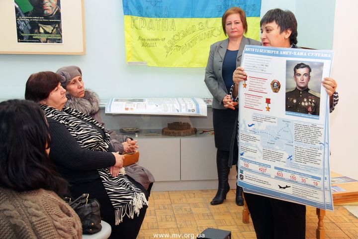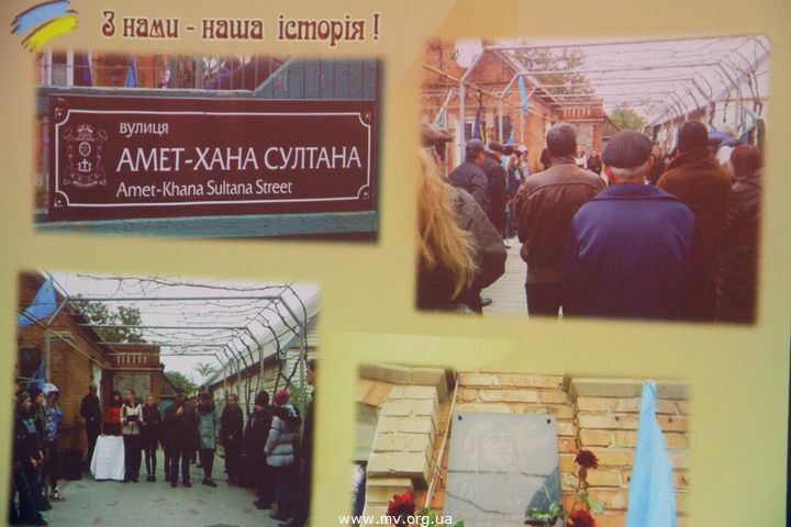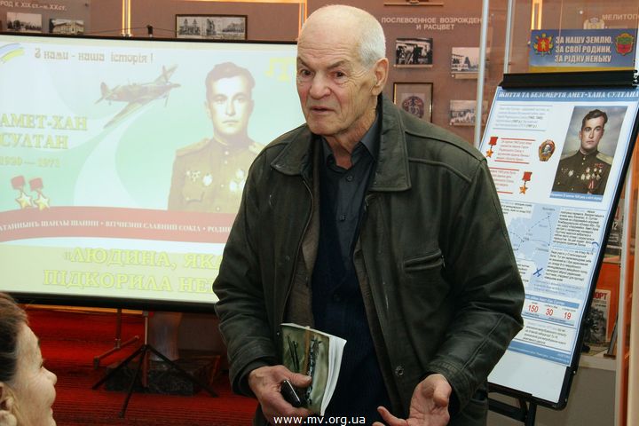На встрече главный редактор газеты "Новый день" Диляра Кудусова рассказала, что у почетного гражданина Мелитополя, члена крымскотатарского комитета "Азат" Миневер Идрисовой родилась идея создать для библиотек и школ города плакаты о дважды Герое Советского Союза, летчике-испытателе Амет-Хане Султане. Профинансировал выпуск плакатов меценат и предприниматель Мустафа Чонкай, а сотрудники "Нового дня" перевели на украинский язык, макетировали плакат, взяв за основу материал из крымскотатарского журнала "Авдет". М. Идрисова представила собравшимся учителя биологии из Семеновки, знатока жизни А.-Х. Султана Виктора Королько, который и подсказал ей идею плакатов, которые были переданы в школьные библиотеки и в городскую централизованную библиотечную систему. А мелитополец Ридван Ибраимов передал для музея реликвии, связанные с именем героя.