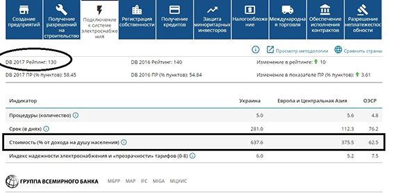 Наконец, Украина может упасть в рейтинге Doing Business. Один из показателей, на базе которого формируется рейтинг – скорость и стоимость подключения к системам электроснабжения.