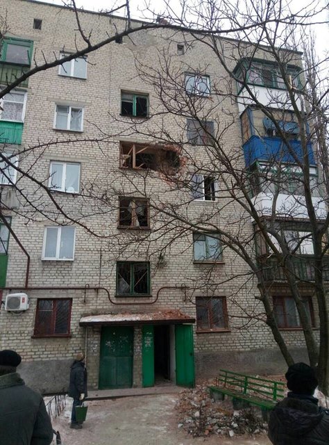 Снаряд боевиков попал в пятиэтажный жилой дом. В одной из квартир находились мать с пятерыми детьми.