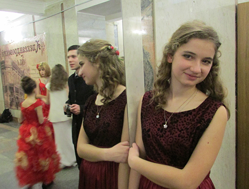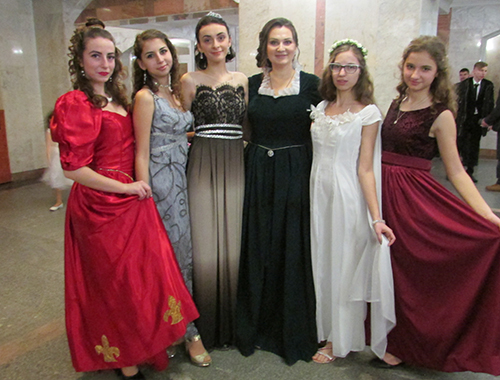 Попасть на Александровский бал можно было, только при соблюдении дресс-кода – вечерние платья, классические костюмы. Так что к этому событию готовились заранее – платья брали напрокат и у знакомых, репетировали классические танцы с тренерами, кружились дома по комнате с мамой и младшей сестрой. И вот - дорога. Длинные кринолины болтаются в чехлах, прикрепленные на крючок под потолком маршрутки, специально заказанной для этого случая.