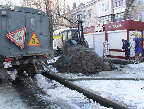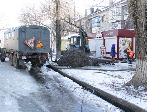 Работы в авиагородке по ремонту водовода продолжаются. Ремонтная бригада КП "Водоканал" выполняет разрытие рядом.