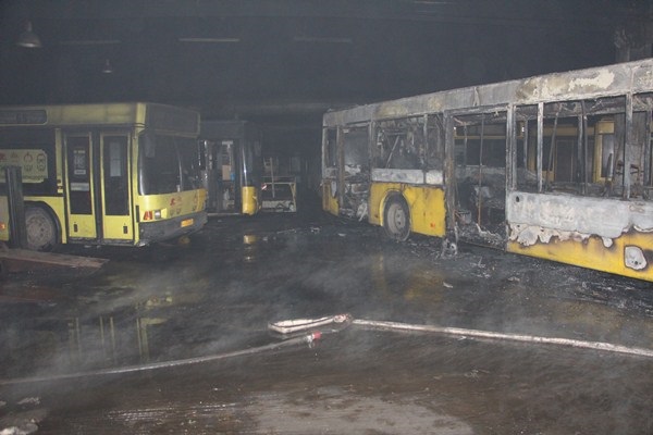 В Киеве в автопарке сгорели шесть автобусов