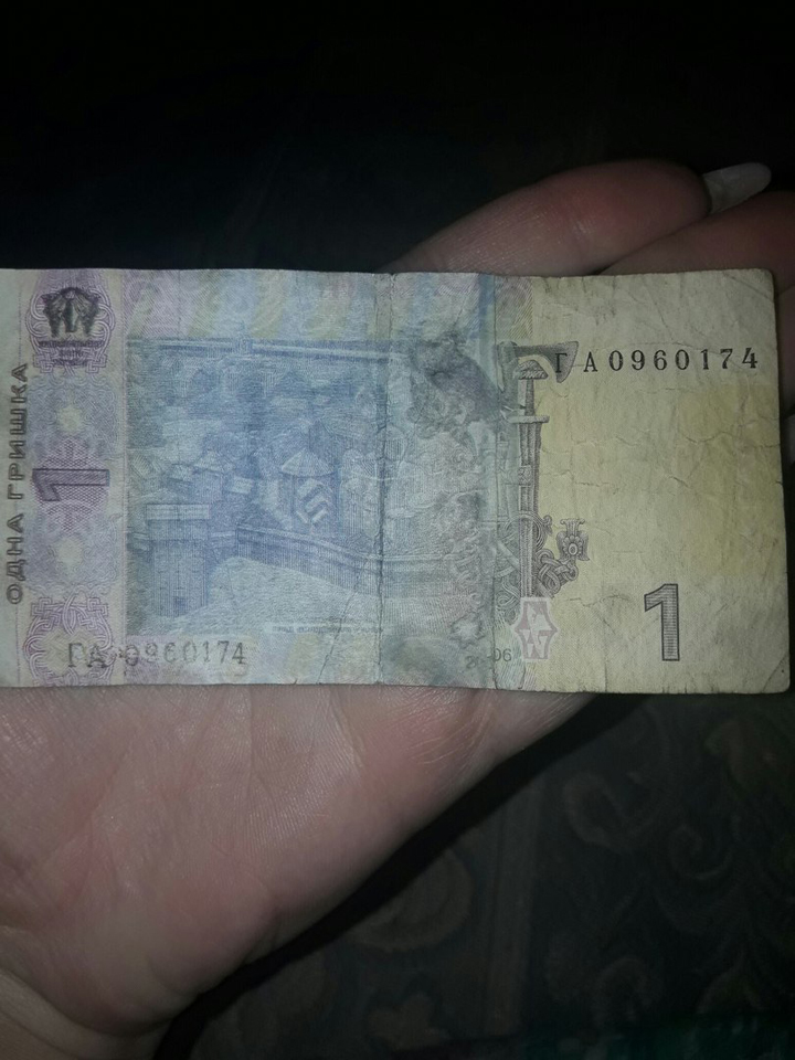 Жительница Мелитополя опубликовала в соцсети фото купюры номиналом в одну "гришку", которую она получила на сдачу в одном из магазинов.