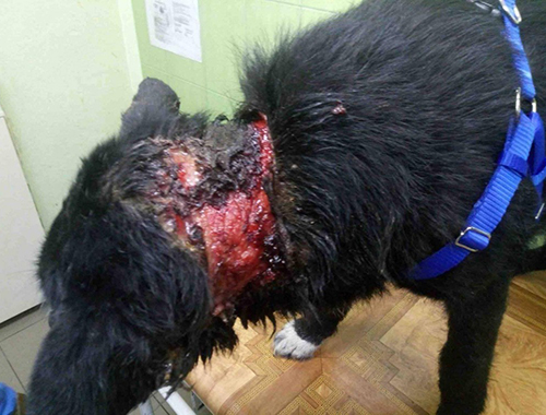 Пострадавшее животное несколько дней пролежало в будке с тяжелыми травмами. Чуть меньше, но досталось еще одной собаке.
