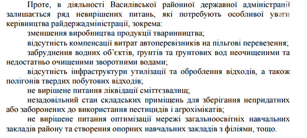Как говорится в распоряжении, выданном главой Запорожской области Константином Брылем, в целом руководство района выполняет законы, однако есть и свои недочеты.