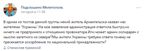 Российский проплаченный троль спровоцировал скандал в мелитопольском паблике