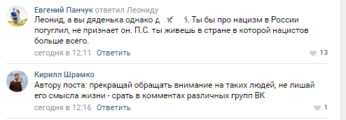 Один из участников сообщества обратился с жалобой к администраторам группы на некоего пользователя, систематически оскорбляющего украинцев по национальному признаку и разжигающего межнациональную рознь. Он также выразил возмущение тем, что этот пользователь до сих пор не заблокирован в группе.