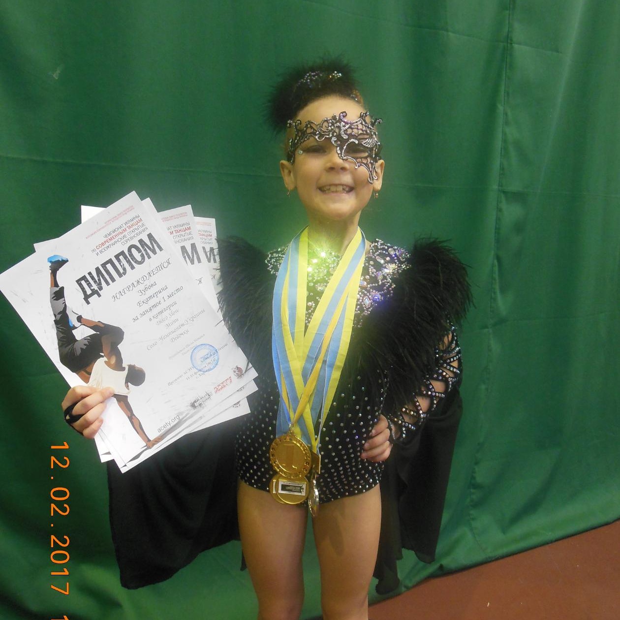 Успеха добилась самая юная наша участница Дарья Пирогова (2010 г. рождения), выступавшая в диско и диско-слоу. Даша завоевала сразу три призовых места. Порадовала руководителя и Ксения Матвиенко, которая в Кубке Украины-мини вышла в финал, соревнуясь в танцевальном мастерстве с 40 участниками (!). Причем, как отмечает Н. Тесля, Ксюша и Катя Зубова только перешли в свою возрастную категорию, и сразу же такой прекрасный результат.
