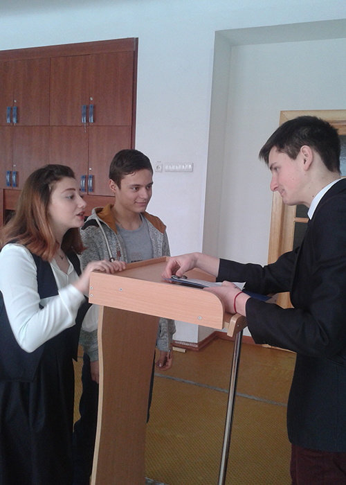 Когда в 9.40 ЗАГС начал свою работу, от желающих связать себя узами браками не было отбоя, звонка на уроки просто не было слышно, а школьников приходилось буквально разгонять. Ученики из начальной школы не отставали от старших товарищей, и тоже сочетались "браком". Были и совсем необычные, разновозрастные пары. Кто-то довольствовался полученным от секретаря "свидетельства о браке", а кто-то приобрел недорогие кольца из разряда бижутерии, чтобы торжественно обменяться ими на церемонии. Были и такие, что приходили в школьный "ЗАГС" скрепить таким образом свою дружбу и получить необычное свидетельство о "дружбосочетании".