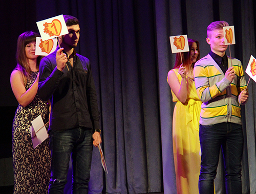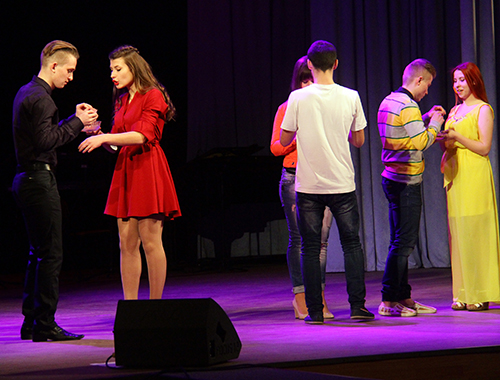 Четыре конкурсных испытания прошли: пара "Стройцентра ПТО" Алена и Николай, молодые влюбленные из колледжа ТГАТУ Алена и Евгений и любящие друг друга Юлия и Владислав из училища культуры.