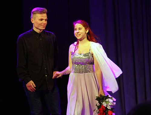 Но вот выбор сделан, на сцену вышли и судьи и пары. Ведущие тянули интригу, оглашая результаты, но не огласить их совсем было же нельзя. По решению жюри, 3 место заняла пара колледжа ТГАТУ Алена и Евгений, 2 место - пара "Стройцентра ПТО" Алена и Николай. Ну а победителями конкурса стали молодые влюбленные училища культуры Юлия и Владислав.