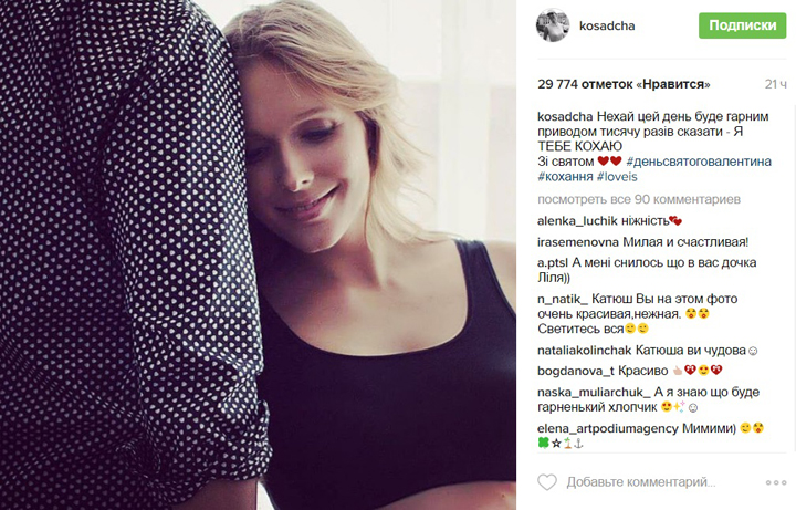 Известная украинская телеведущая Катя Осадчая, которая до сих пор официально не прокомментировала слухи о своем интересном положении, поделилась со своими подписчиками в сети нежным снимком в честь Дня влюбленных.