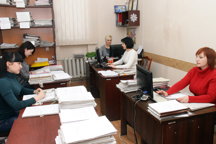 В отделе государственных социальных инспекторов управления социальной защиты населения нас встретили шесть хрупких, милых и приветливых женщин: начальник отдела Светлана Булгакова, главный государственный социнспектор Елена Воловик, государственные социнспекторы Светлана Чупахина, Анна Грищенко, Наталья Казимова и Елена Обрубова. Отдел – это одна небольшая комната, тесно забитая рабочими столами с кипами документов. Видимо, только такие стройные дамы и могут лавировать между ними. С. Булгакова знакомит нас с обязанностями социальных инспекторов: