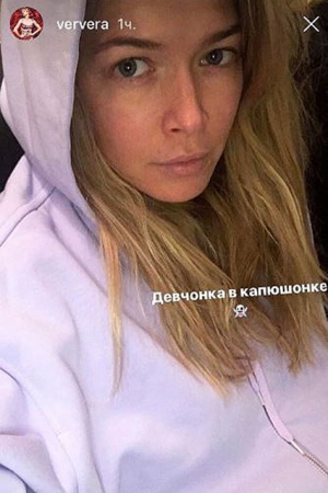 Без капли косметики и без единой морщинки Вера Брежнева позирует на фото в спортивной кофте.