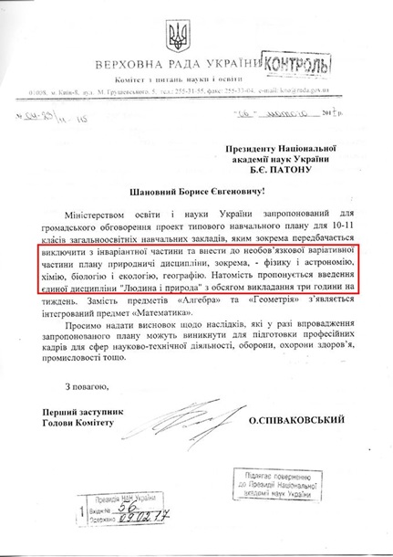 Комитет, в свою очередь, передал этот документ в Национальную академию наук Украины.