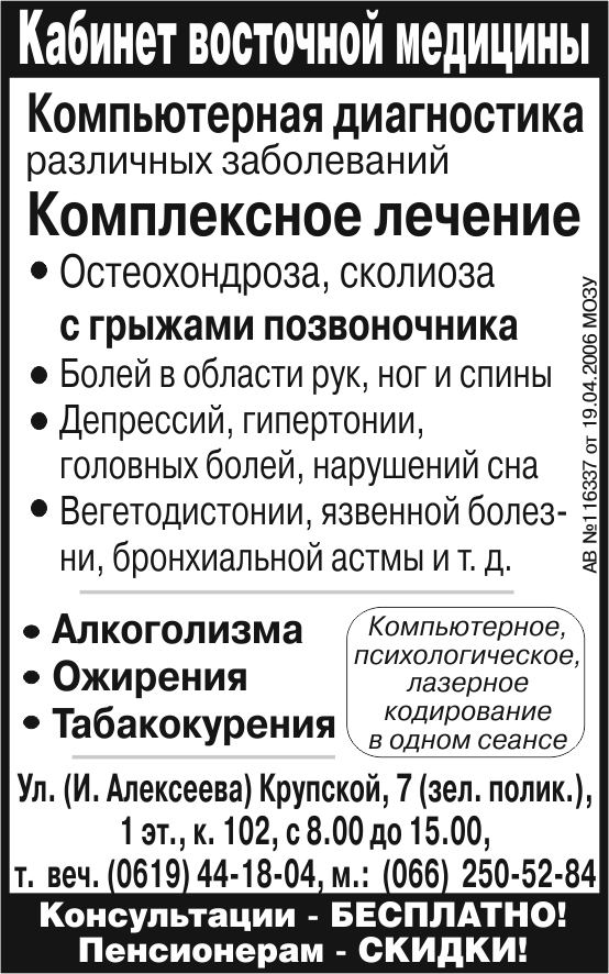 Амбулатория № 6 (пр. Б. Хмельницкого, 46; тел. 44-05-58):