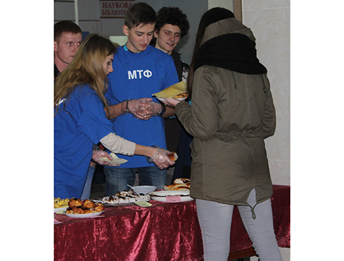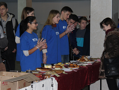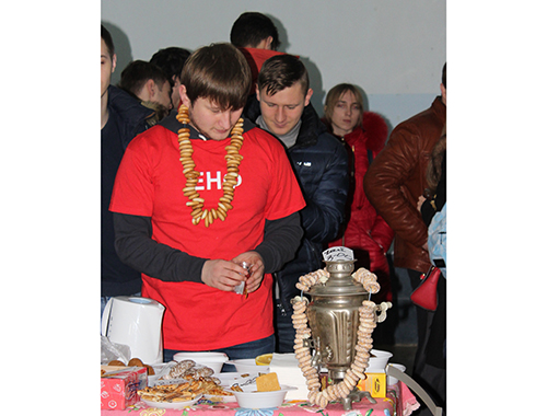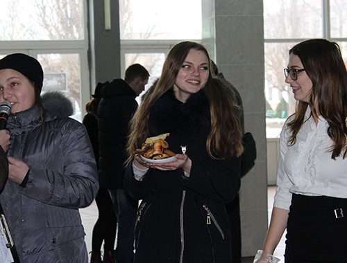 Отмечали праздник Масленичной ярмаркой, которая расположилась в холле Центра культуры и досуга учебного заведения. Представители всех факультетов по доступным "студенческим" ценам продавали не только блины. На столах стояли и другие вкусности: булочки, тортики и пирожные, а также чай и кофе. Подкрепиться сладким на ярмарку пришли не только студенты, но и преподаватели. Посетил ярмарку и ректор университета Владимир Кюрчев.