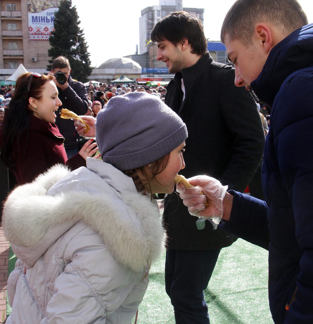 26 февраля на площади Победы сотни мелитопольцев угощаются блинами, пьют глинтвейн, выбирают себе в подарок симпатичные безделушки, участвуют в разных конкурсах и аплодируют выступлениям творческих коллективов города. Мелитополь гуляет на общегородской Масленице.