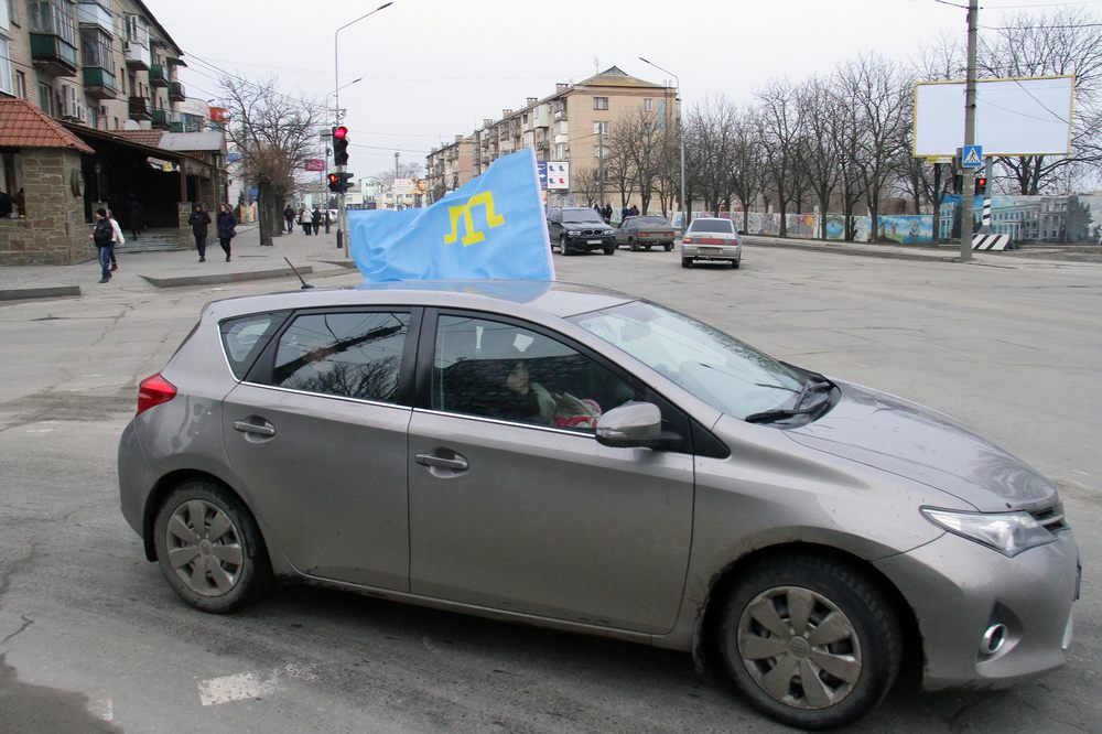 Далее все присутствующие с государственными флагами Украины и флагами крымскотатарского народа распределились по машинам и отправились в автопробег по Мелитополю до южного выезда из города, до выезда на Крым. Так мелитопольцы присоединились к всеукраинским мероприятиям, посвященным территориальной целостности Украины и сопротивлению оккупации Крыма.