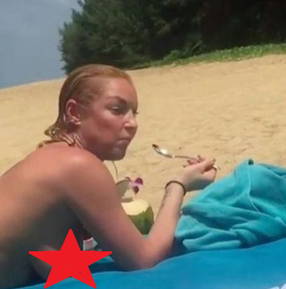 По словам очевидцев растолстевшая и не совсем трезвая Волочкова с самого утра потягивала шампанское. На пляже знаменитость закусывала алкогольные напитки спелым кокосом.