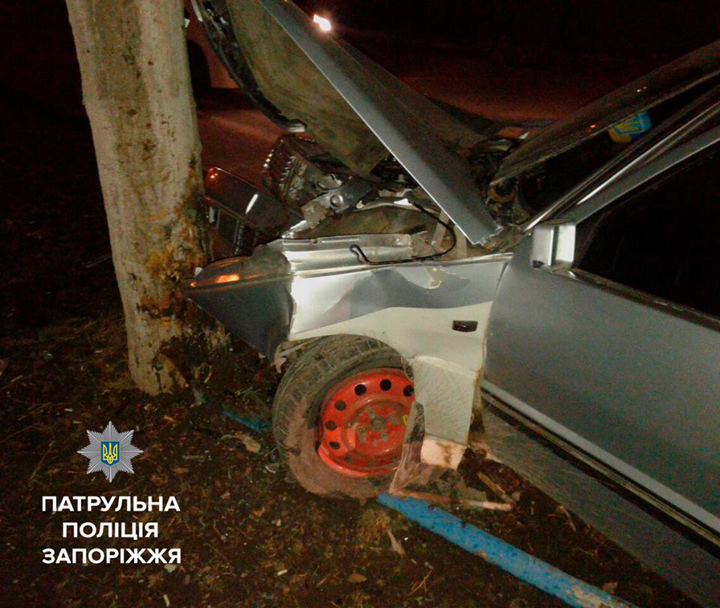 В Запорожье пьяный водитель врезался в дерево: авто в смятку - ФОТО